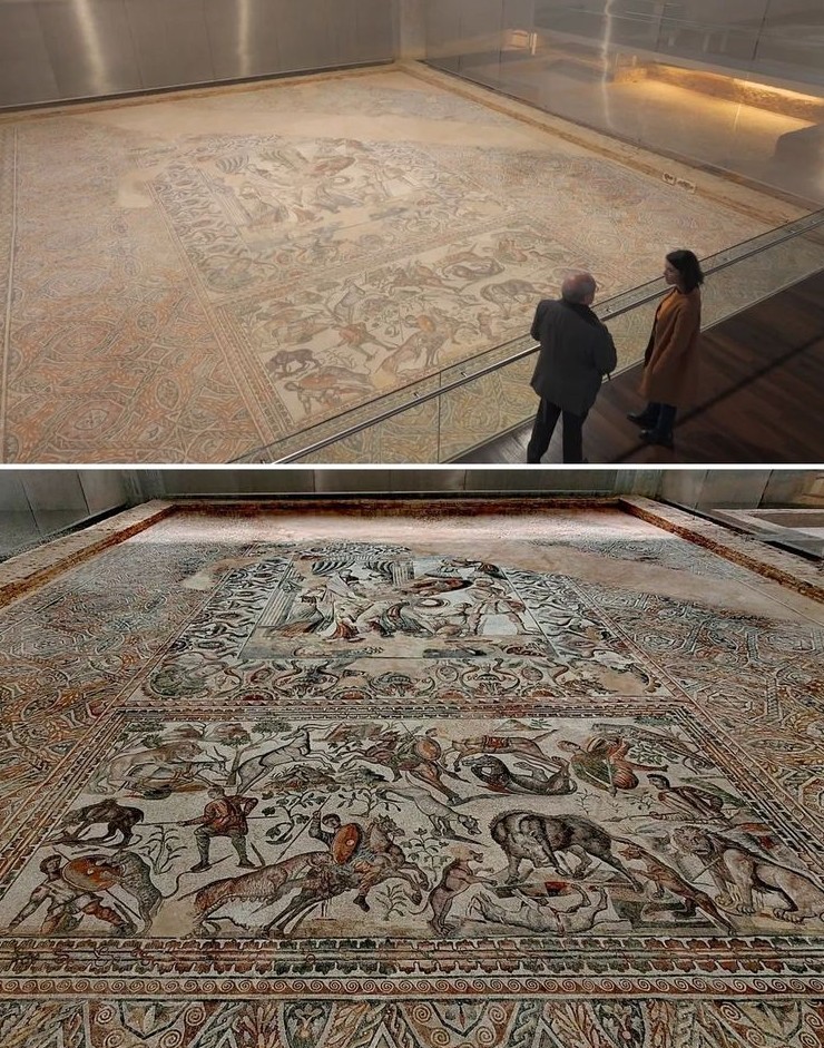 2. Большая мозаика в позднеантичной римской вилле Ла-Ольмеда в Испании, изображающая мифологические сцены и сцены охоты. III-IV век н.э.