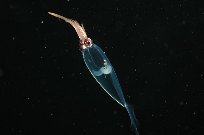 10. Стеклянные кальмары (семейство Cranchiidae) обитают в бескрайних водах сумеречной, или мезопелагической, зоны