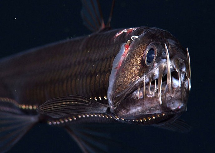 11. Изящные, серебристые и украшенные умеренной биолюминесценцией вдоль брюха, тихоокеанские хаулиоды (Chauliodus macouni) являются грозными хищниками для мелкой рыбы и креветок