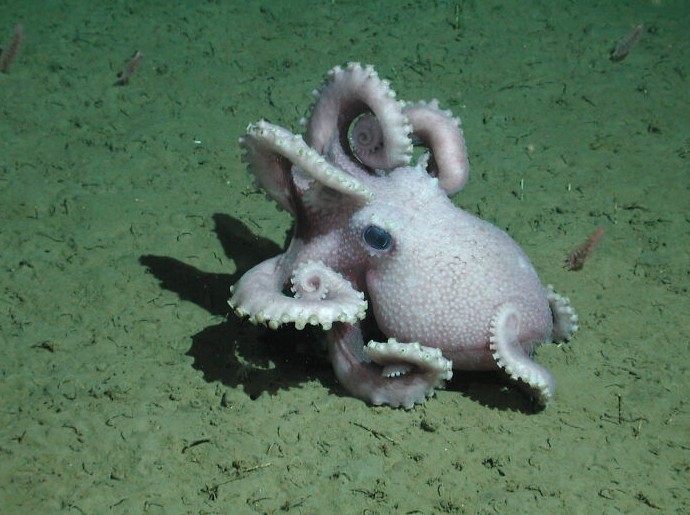 2. Бородавчатый глубоководный осьминог (Graneledone sp.) — один из самых распространенных глубоководных осьминогов в северо-восточной части Тихого океана