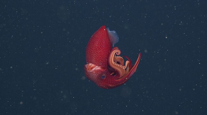 Океан остаётся одной из самых малоизученных частей нашей планеты. Чем глубже опускаешься под воду, тем меньше там света — и тем более необычной становится жизнь. В этих тёмных слоях обитают существа, которые внешне больше напоминают что-то внеземное, чем привычных нам животных. Учёные из исследовательского института MBARI уже много лет изучают глубины океана с помощью подводных аппаратов и современных технологий. Благодаря этому им удалось зафиксировать редкие кадры удивительных организмов — от почти полностью прозрачных существ до тех, кто сам излучает свет. 1. Bathydevius caudactylus, первый известный голожаберный моллюск, или морской слизень, обитающий в глубоких слоях воды 2. Бородавчатый глубоководный осьминог (Graneledone sp.) — один из самых распространенных глубоководных осьминогов в северо-восточной части Тихого океана 3. Клубничный кальмар У клубничного кальмара (Histioteuthis heteropsis) один большой глаз и один маленький. Вместе эта невероятная пара помогает кальмару охотиться за пищей в сумеречной зоне океана. 4. Осминог-флапджек (Opisthoteuthis) Этот очаровательный головоногий моллюск попал в заголовки новостей благодаря своей миловидности. 5. Глубоководная корончатая медуза (Atolla sp.) — одна из самых распространенных медуз в океанских глубинах 6. Глубоководный удильщик (отряд Lophiiformes) 7. Адский вампир (Vampire squid) — последний выживший представитель древней группы головоногих моллюсков Этот «вампир» — безобидный падальщик. 8. Малоротая макропинна (Macropinna microstoma) выделяется как одна из самых причудливых Два небольших углубления, где обычно располагаются глаза у рыбы, на самом деле являются обонятельными органами, а её глаза — это два светящихся зелёных шара за мордой, смотрящие вверх, к макушке головы. 9. Медуза Solmissus spp. — один из главных хищников океана 10. Стеклянные кальмары (семейство Cranchiidae) обитают в бескрайних водах сумеречной, или мезопелагической, зоны Не имея защитной раковины и укрытия, им приходится проявлять изобретательность. Прозрачность — один из способов выжить в условиях ограниченного количества мест для укрытия. 11. Изящные, серебристые и украшенные умеренной биолюминесценцией вдоль брюха, тихоокеанские хаулиоды (Chauliodus macouni) являются грозными хищниками для мелкой рыбы и креветок 12. Chaetopterus pugaporcinus — вид морских многощетинковых червей из семейства Chaetopteridae 13. У червя Swima sp. восемь мешочков с биолюминесцентной жидкостью прямо за головой. При беспокойстве он выпускает «бомбу», которая взрывается, излучая зеленое свечение Здесь вы найдёте 16 фотографий, после которых океан пугает всерьёз.