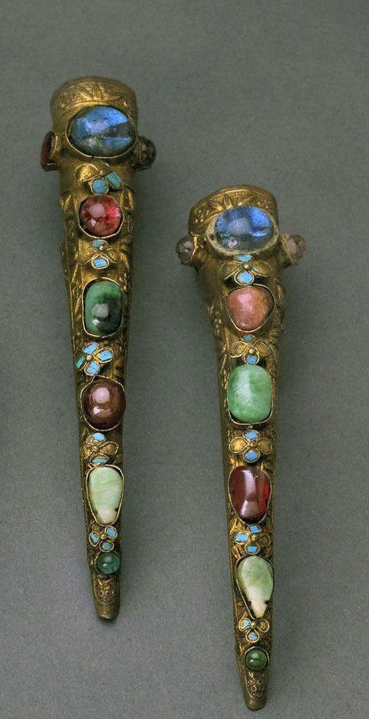 13. Накладки на ногти, украшенные драгоценными камнями, середина-конец 1800-х годов, Китай. Поздняя династия Цин