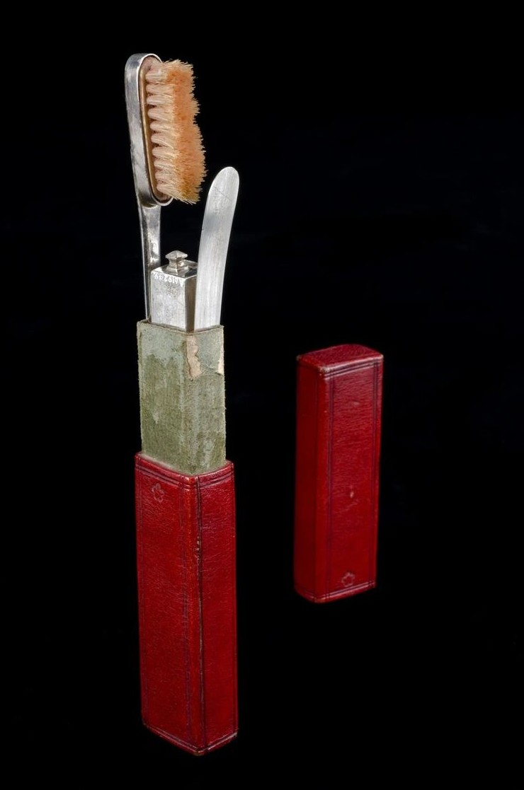 11. Зубная щетка Наполеона Бонапарта с позолоченной серебряной ручкой и щетиной из конского волоса. 1790–1821 гг.