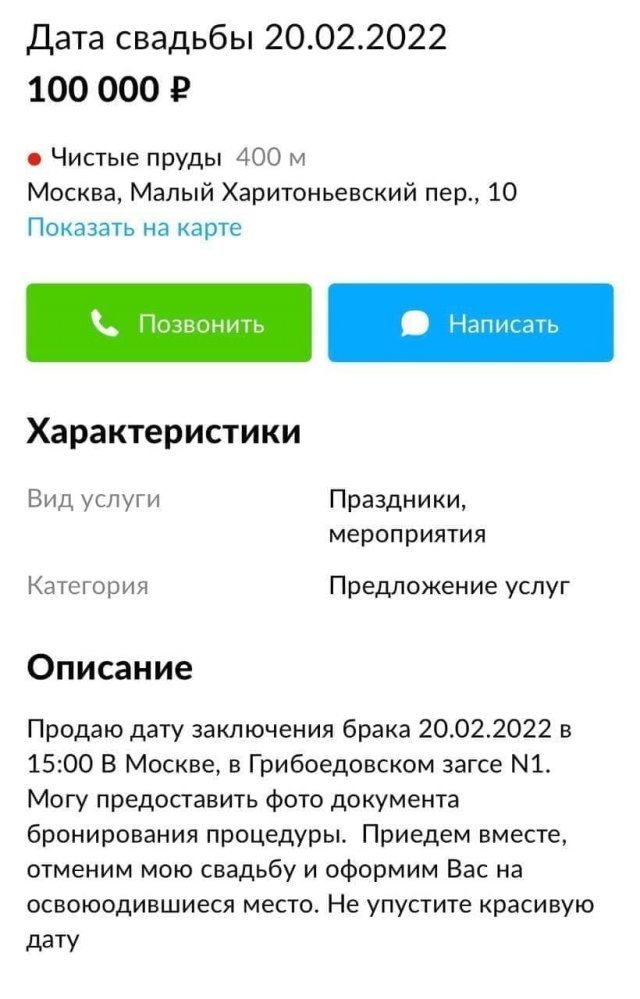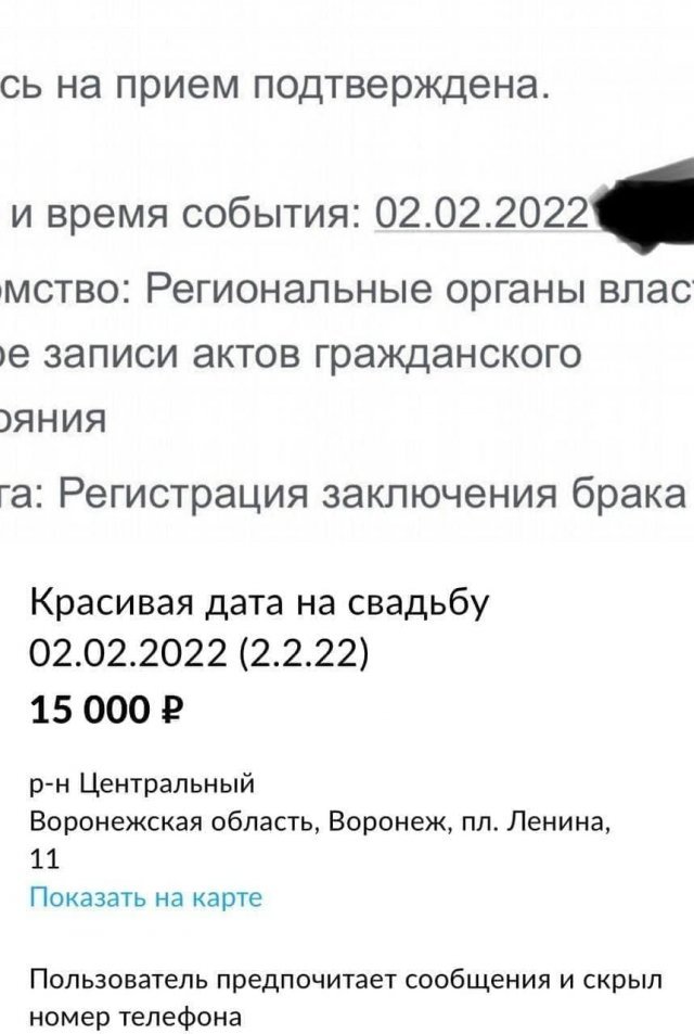 Многие пары норовят зарегистрировать собственный союз в красивую дату, наивно полагая, что это может как-то повлиять на предбудущие взаимоотношения в семье. 22 февраля текущего года(2.2.22)идеально подходит под требования таких людей, поэтому численность желающих официально оформить свои взаимоотношения в этот день, будет будто ввек возвышенным. Натурально, возможности ЗАГСов ограничены, и сотрудники попросту не в состоянии зарегистрировать союз всех желающих, что уже вытребовало дефицит мест и, будто следствие, отвечающие предложения в Сети. Вручайте же посмотрим на примеры подобных объявлений, в настоящем посте.