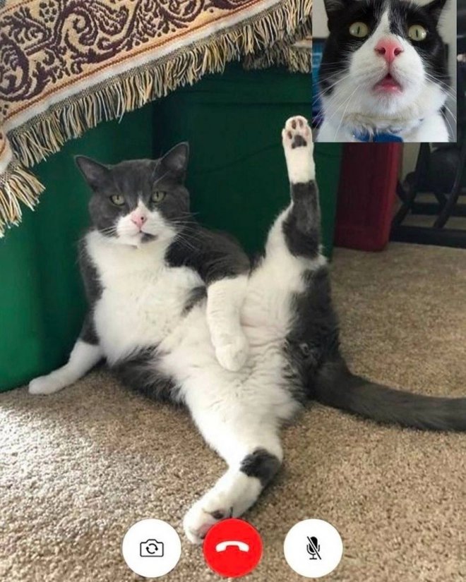 У многих пар случаются ситуации в жизни, когда они вынуждены временно жить раздельно в разных городах и странах. Многие из них, чтобы как-то компенсировать разлуку и освободиться от ощущения одиночества, прибегают к помощи видеозвонков для более узкого и интимного общения. Вручайте же посмотрим, будто это всегдашне происходит, на образце карточек забавных котиков.