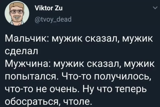Подборка мемов, шуток и приколов от пользователей соцсетей на мужские темы. Безусловно, барышням настоящий юмор также может показаться, настолько что не проходим мимо.