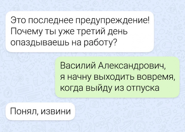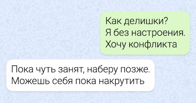 Подборка забавных переписок между дружками, родичами, коллегами по работе, а также абсолютно незнакомыми людами. Вручайте же глянем на их диалоги, в продолжении.