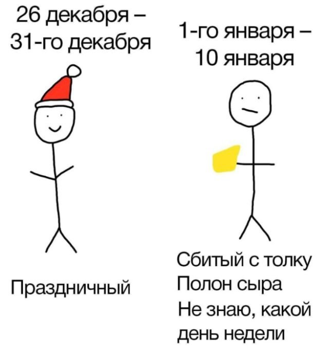 Порция шуток и мемов про Новейший год и новогодние выходные.