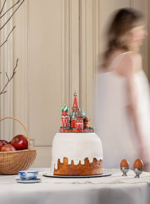 Московская кондитерская представила к Пасхе эксклюзивный кулич за 100 тысяч рублей. Изделие под названием «Кремлёвский» украшено миниатюрной копией храма Василия Блаженного.